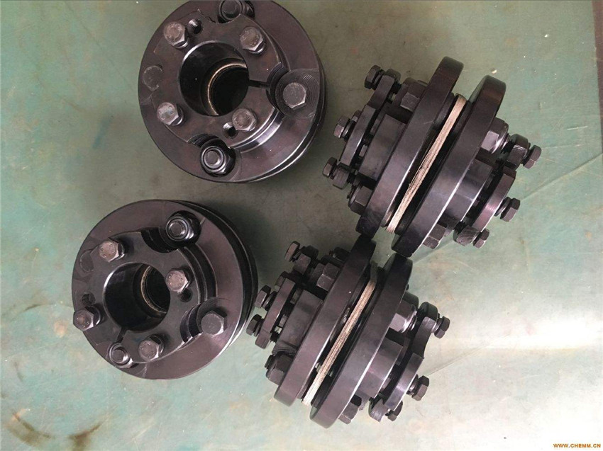 結構:膜片聯軸器至少由一個膜片和兩個軸套組成。膜片 被用銷釘緊固在軸套上一般不會松動或引起膜片 和 軸套之間的反沖。有一些生產商提供兩個膜片的,也有提供三個膜片的,中間有一個 或兩個剛性元件,兩邊 再連在軸套上。單膜片聯軸器和雙膜片聯軸器的不同之處是處理各種偏差能力的不同,鑒于其需要膜片能復雜的彎曲,所以單膜片聯軸器不太適應偏心。而雙膜片聯軸器可以同時曲向不同的方向,以此來補償偏心。